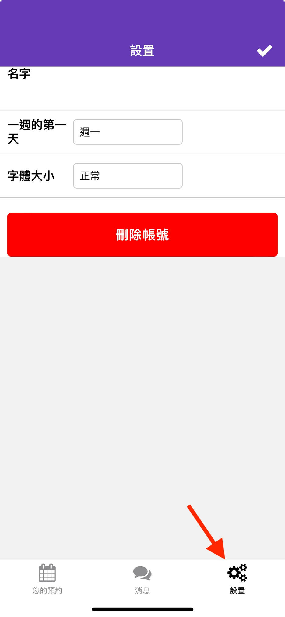 若要刪除您的帳戶,請導航至齒輪圖示並按紅色按鈕